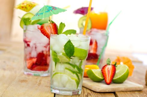 “You can enjoy a cocktail or two without ruining your calorie budget, provided you follow a few simple rules. Identifying calorie-packed cocktails isn’t difficult and once you know what to look for, you can enjoy an adult beverage without sabotaging your healthy eating plan. 1. Ditch the Opaque Drinks Cocktails that you can’t see through are almost certainly harboring extra calories and fat. The reason for the opaqueness is almost always a form of dairy, from regular full fat milk to ice-cream; these full-fat mixers can have hundreds of calories in even a small amount. Brandy Alexanders, Mudslides and even White Russians can be prepared with heavy cream or even ice-cream, so be sure to ask about the mixers or request skim milk before you order. Vegan options don’t fare any better; the coconut milk in your Pina Colada is packed full of calories, too! If you can’t see through a cocktail, ask what’s in it before you drink it to avoid downing dozens of extracalories. 2. Bypass Frozen Beverages While a frosty daiquiri or colada by the pool sounds refreshing and may even taste light, beverages served blended with ice are usually packed with calories. Foods that are frozen are generally more heavily sweetened than their “over ice” counterparts. If you have ever tasted melted ice-cream, you know how overly sweet it can be. Things taste less sweet when frozen, so food and beverage makers pack frozen treats with sugar to make them appealing. Any beverage that comes premixed and slushy is likely harboring a lot of sugar and you won’t be able to tell by taste alone. Skip the high calorie premade frozen beverages or make your own in a blender so you know exactly what’s inside. 3. Opt for Diet / No Cal Mixers Ask your server to switch the full sugar cola, ginger ale, energy drink or syrup in your Mojito or Rum & Coke and you’ll cut a significant amount of calories. While the spirits added to popular soda mixed drinks do have calories, switching the soda portion to a sugar free variety will save over 100 calories per beverage. 4. Choose Infused Spirits An infused vodka or rum served on the rocks has all of the flavor of a mixed drink but lacks the added calories from syrup or soda. From exotic spices to refreshing citrus, a flavored spirit can allow you to enjoy your drink without packing on the pounds. You can also ask for your drink to be diluted with water or sparkling water to cut the punch of the alcohol and make the drink last longer. 5. Go Garnish Free Even a low calorie beverage can pick up plenty of excess calories when served with a sugared rim, sugar laden fruits or other sweet garnishes. If you see a lot of fancy and high calorie decorated beverages passing your table just specify that you want sugar free or garnish free when placing your order. Choosing lower cal cocktails and adult drinks is more about avoiding added sugar and fat than it is about selecting one particular ingredient or brand. Knowing which types of drinks and formulations to choose and which to bypass can cut the calories you and help you stay on budget.” From Lose It! Blog