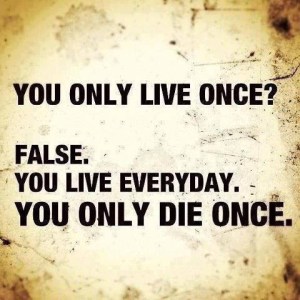 Uncategorized You Only Die Once Posted by ewingfamily on September 5, 2015February 3, 2017 Live the life you’ve always wanted to live. And live it amazingly. Start today and make all your tomorrows amazing. Share this: Click to share on X (Opens in new window) X Click to share on Facebook (Opens in new window) Facebook Click to share on LinkedIn (Opens in new window) LinkedIn Click to share on Pinterest (Opens in new window) Pinterest Click to email a link to a friend (Opens in new window) Email Click to print (Opens in new window) Print Like Loading...