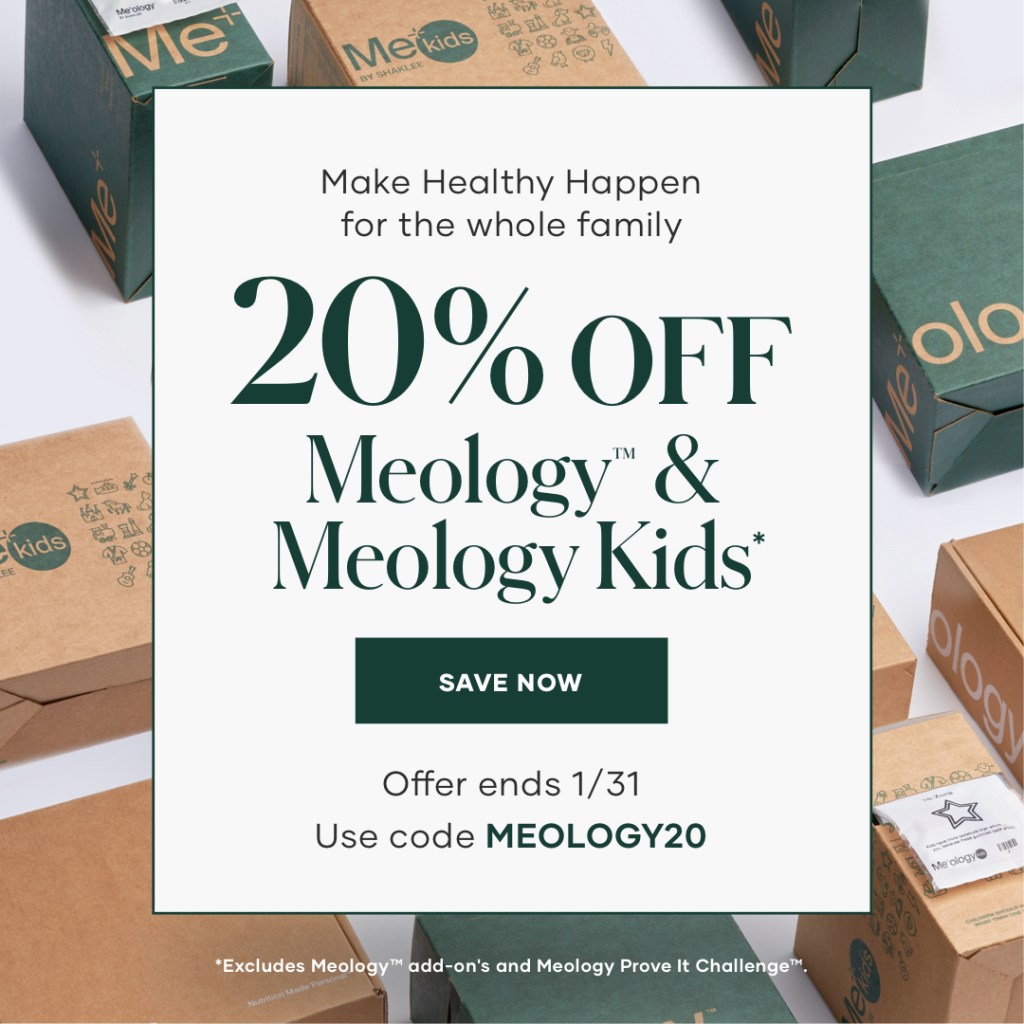 Now through January 31st, we’re giving 20% off online orders of Meology Essentials, Meology Essentials Plus, and Meology Kids when you use promo code: MEOLOGY20.