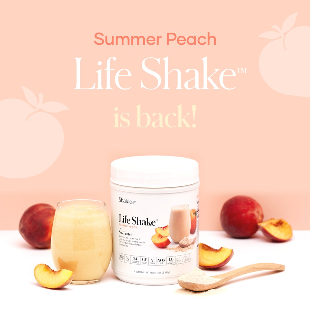 Life Shake™ is a convenient, healthy, complete meal with 20 grams of protein, 6 grams of fibre, and 24 essential vitamins and minerals, all in juicy peach. It provides energy and essential nutrients beneficial to overall health. Life Shake also supports satiety and healthy weight when used as a meal replacement in the Shaklee 180® Program.